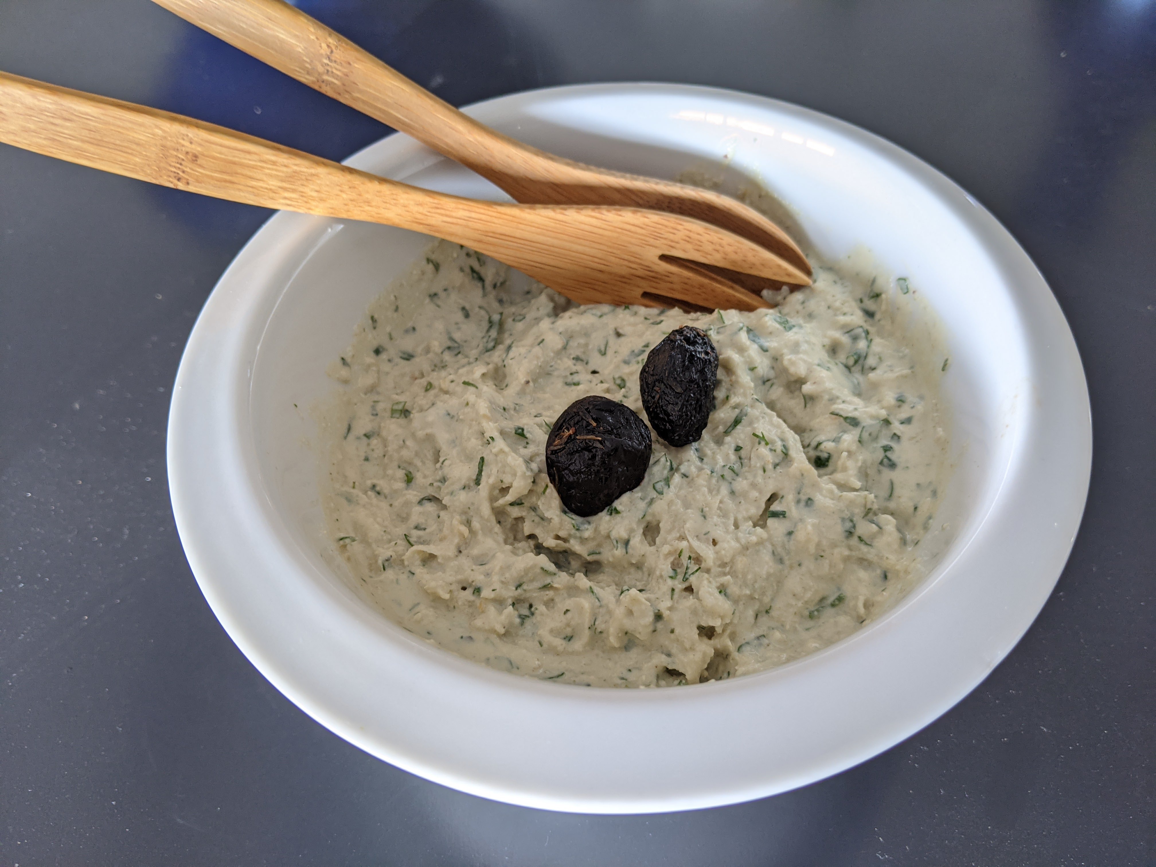 La base d’ aquesta salsa es amb maionesa d’ou, una altre opció més lleugera seria substituir-la per iogurt d’ovella. També s’hi posa filets d’anxova, que aquí he substituït per tàrtar d’algues, dons he volgut fer-la totalment vegana.